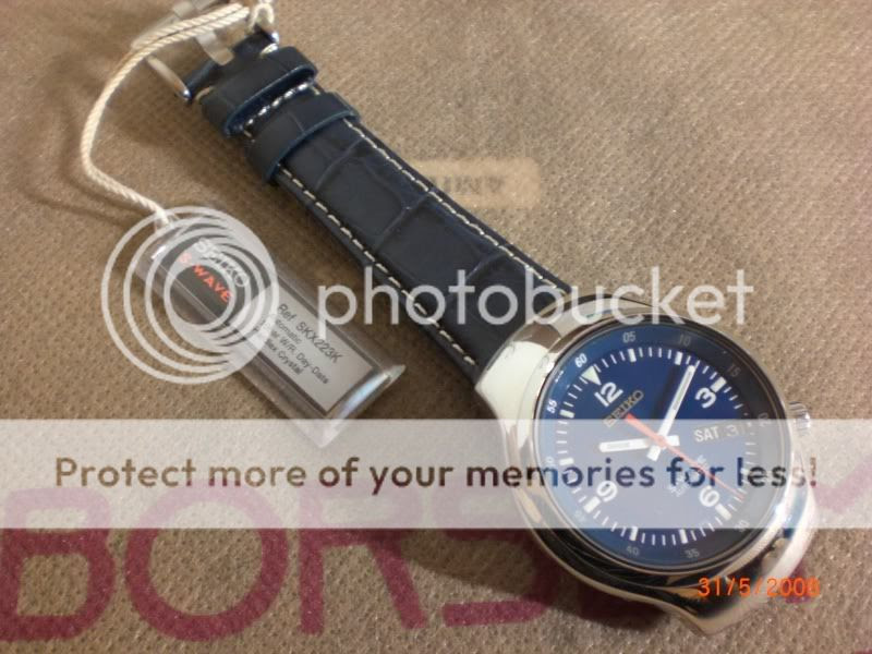 This NOS came with hangtag and the blue film still affixed on clear caseback showing the common Seiko 7S26 movement.